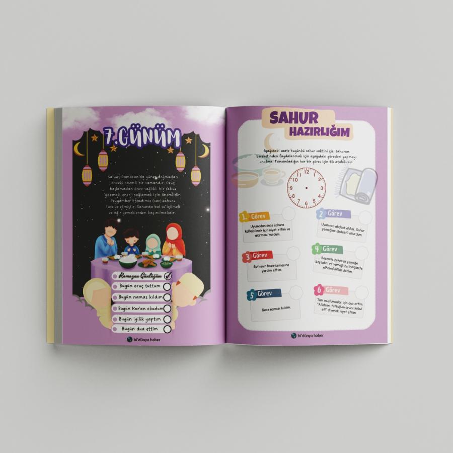 Ramazan ayını çocuklarınız için daha anlamlı ve eğlenceli kılacak bu özel ajanda, her gün uygulanabilecek etkinlikler ve görevlerle dolu! Günlük sayfalarda, temel dini bilgilere ve Ramazan’ın önemine dair kısa bilgiler yer alırken, aynı zamanda çocuklarınızın keyifle yapacağı eğlenceli etkinlikler de sunuyor. (İLK OKUL DÜZEYİ)