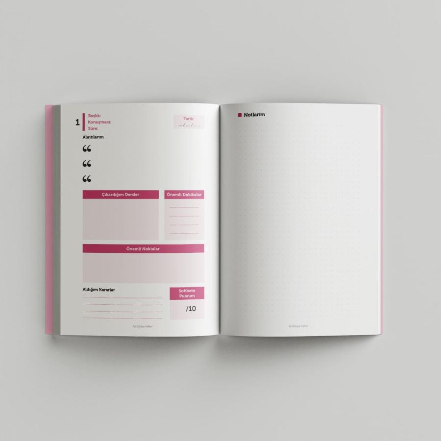 Gerek Sohbet Halkaları gerekse Medya Üzerinden dinlenen sohbetleri daha verimli hale getirmenin yolu! Dinlediğiniz sohbetlerin dakikalarını ve sohbetten çıkaracağınız dersleri kayıt altına almak için faydalı bir yöntem. Hedefler, izleme süresi, çıkardığım dersler vs. Birçok takip bu ajanda ile eğlenceli hale gelecektir..